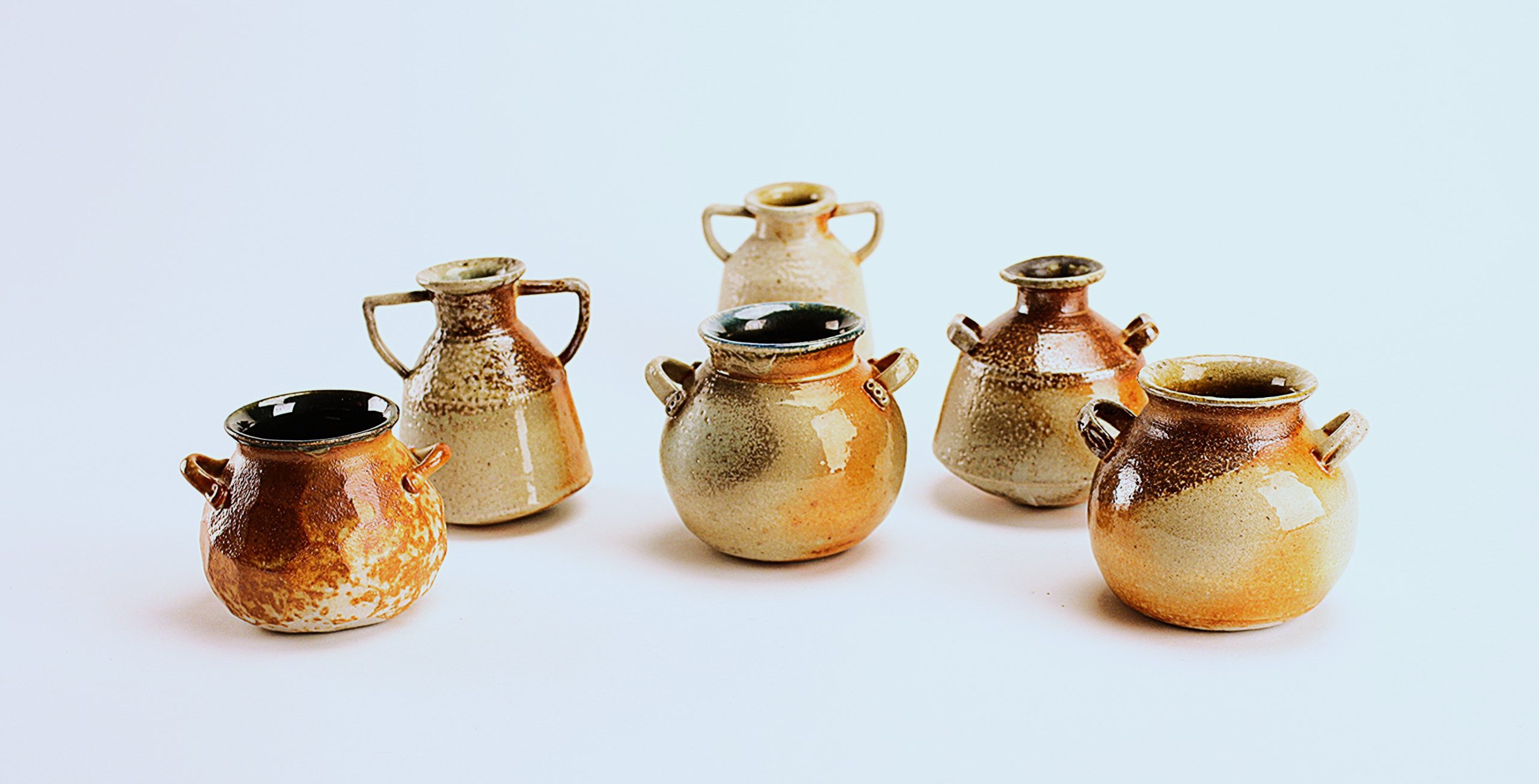 Selections from the Mini Amphora Collection, 2013. Wheel thrown stoneware and wood fired or soda firedMini Amphora, 2013. Wheel thrown stoneware and soda fired